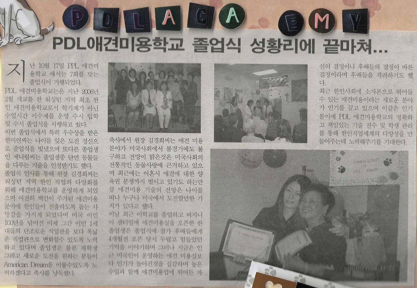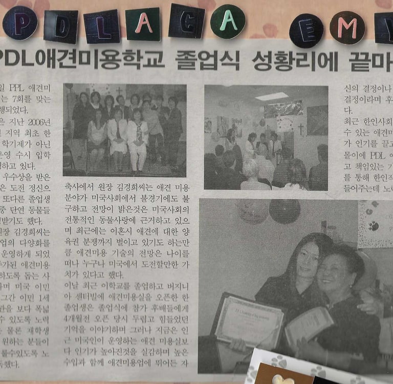 P.D.L. 애견미용 아카데미는 24년의 교육 운영 경험과 약 21년간의 정식 인가된 애견미용 교육을 바탕으로, 버지니아에서 신뢰받는 전문 애견미용 교육기관입니다.